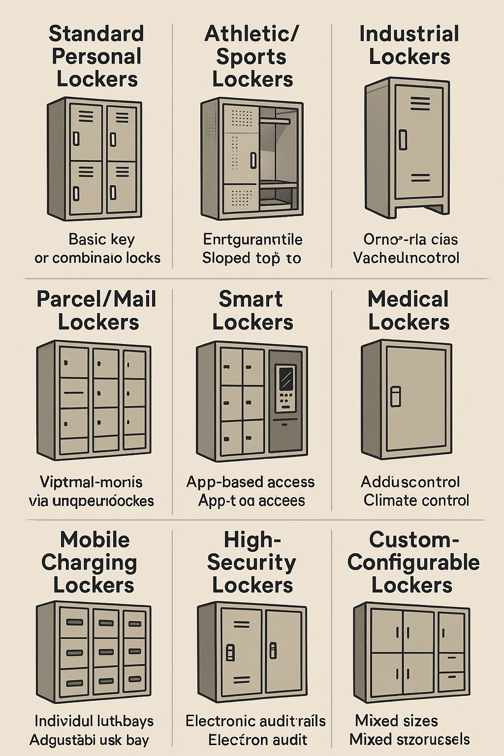ロッカーは、デザイン、機能、展開コンテキストに基づいて分類されます。以下は一般的なタイプの内訳です。
